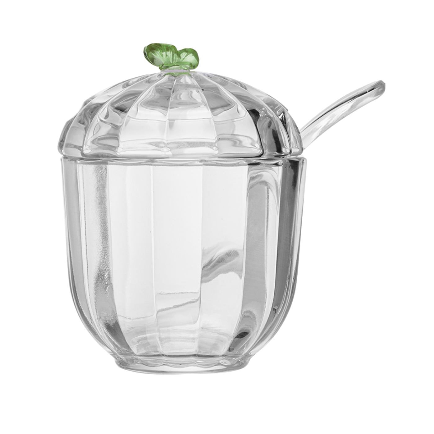 Um açucareiro prático e elegante para completar sua cozinha ou mesa de café. Com design delicado e colher inclusa, as medidas são 8 cm de diâmetro e 9,5 cm de altura, ideal para armazenar açúcar com estilo.