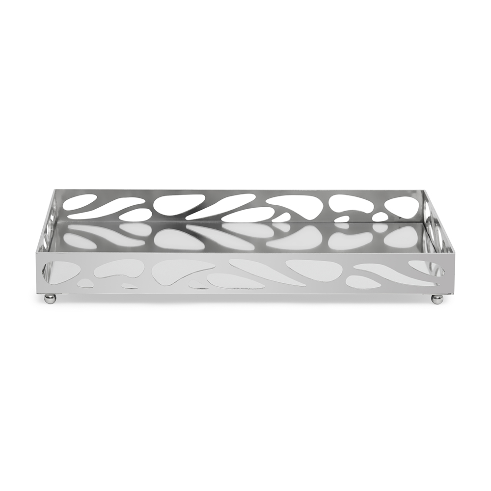 Produzida com metal resistente e base em espelho, esta bandeja garante firmeza e estilo para organizar itens no dia a dia. O acabamento prateado é moderno e fácil de harmonizar, enquanto seu tamanho compacto facilita a colocação em mesas, aparadores ou balcões.