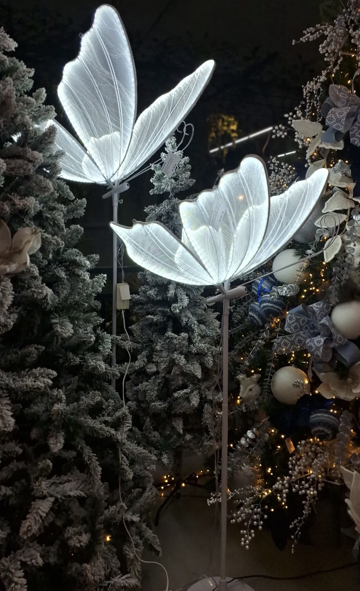 Apesar do seu tamanho colossal, a borboleta é construída com materiais que garantem leveza e facilitam a suspensão, mantendo a forma estruturada das suas asas. O design foca na simulação de um voo majestoso, e os detalhes em cores vibrantes ou texturas cintilantes (dependendo do modelo) garantem que a peça reflita a luz de forma deslumbrante, adicionando movimento e vida ao teto.