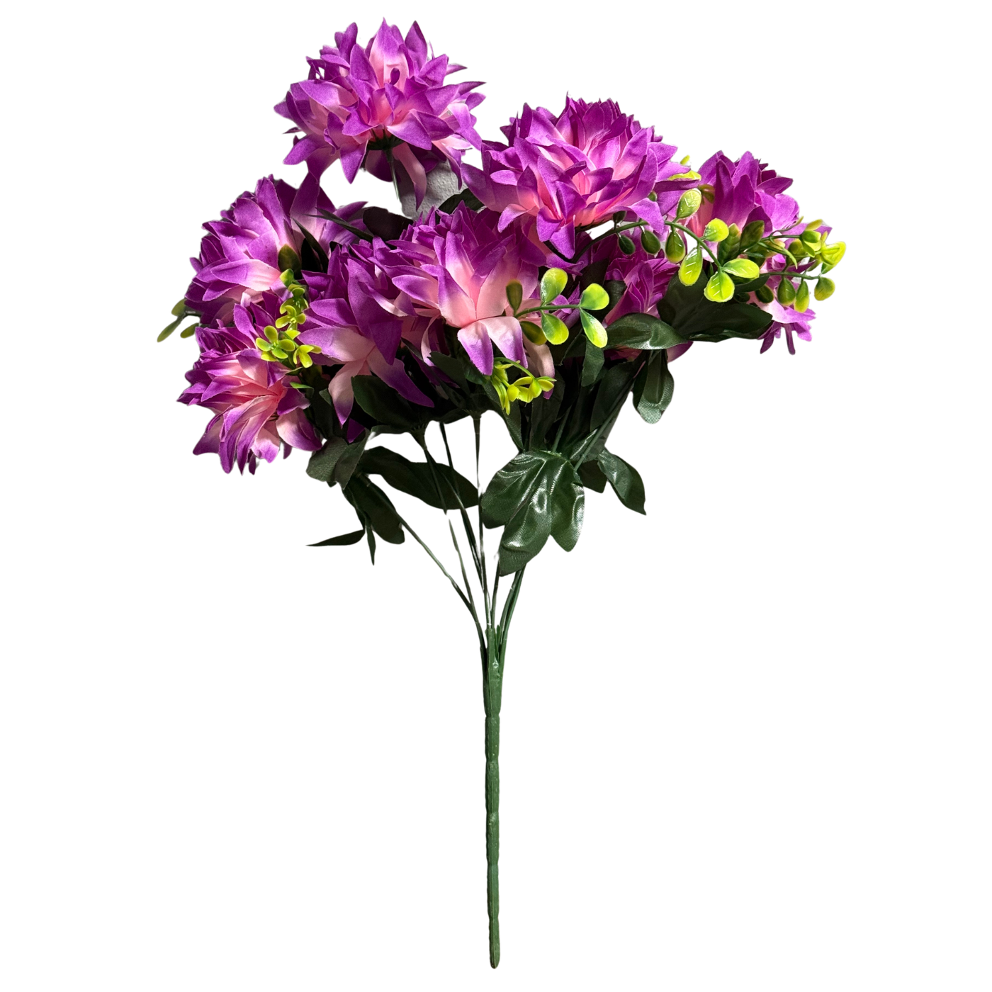Buquê artificial com 9 flores de crisântemo na cor roxa, perfeito para decorar ambientes com charme e durabilidade.