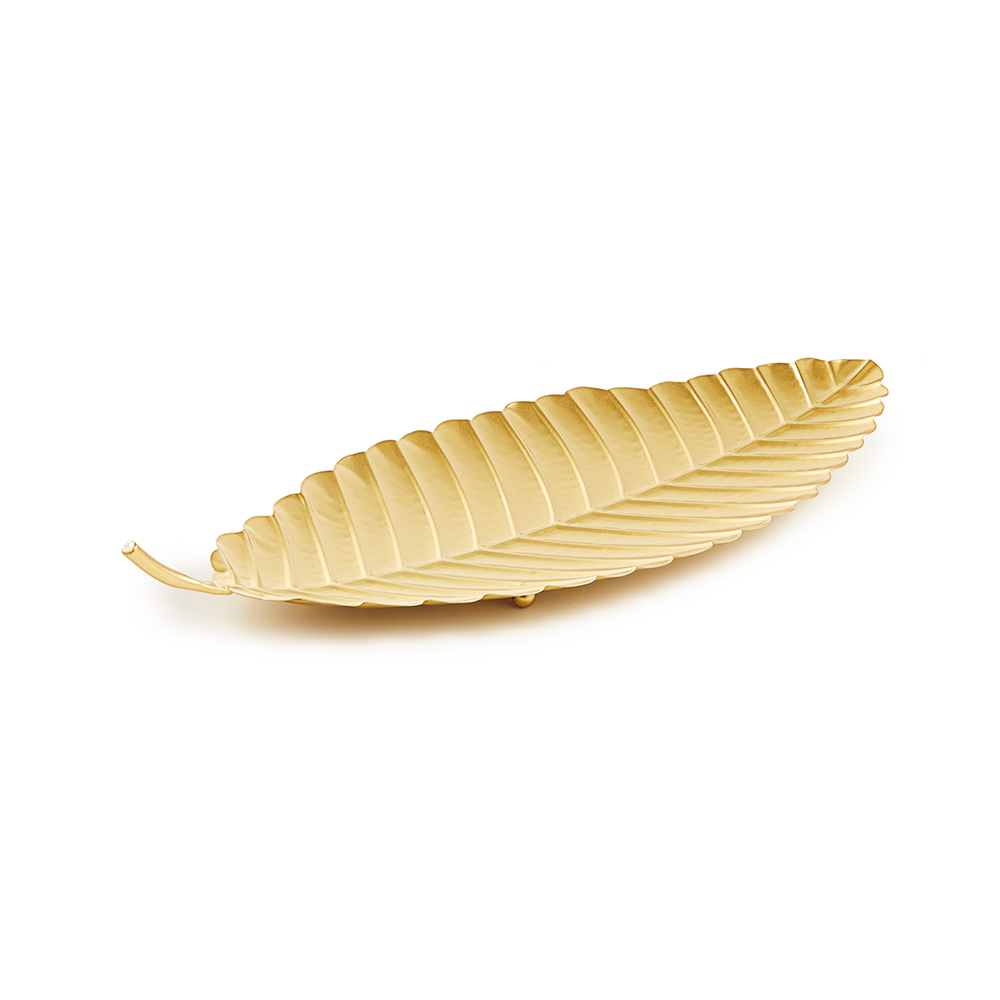 Decore sua festa ou ambiente com elegância usando este centro de mesa em formato de folha dourada, feito em metal resistente.