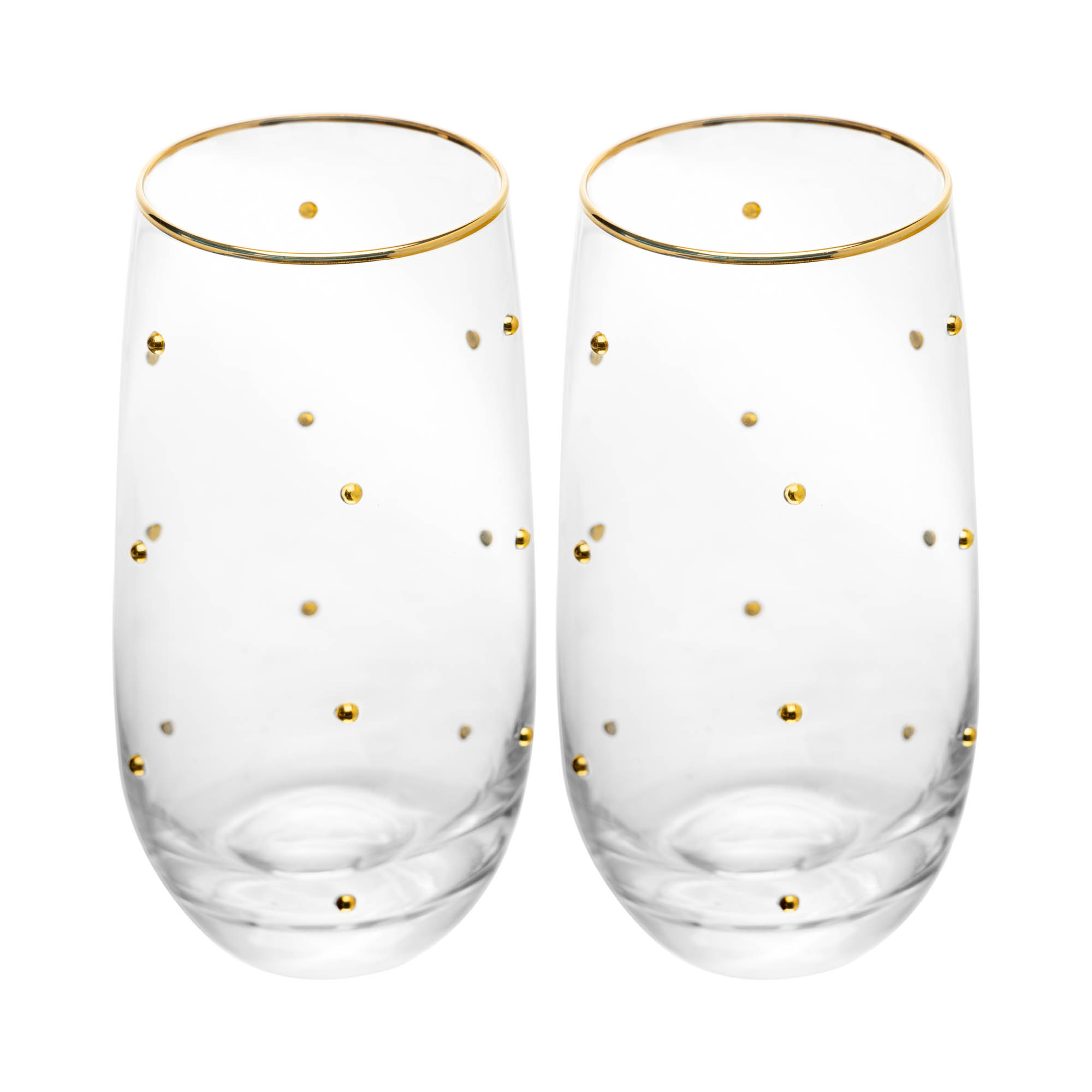 Cada copo tem 15 cm de altura e capacidade de 300 ml. Os pontos e a borda em fio de ouro proporcionam um visual elegante e diferenciado sem perder funcionalidade ou conforto ao segurar.