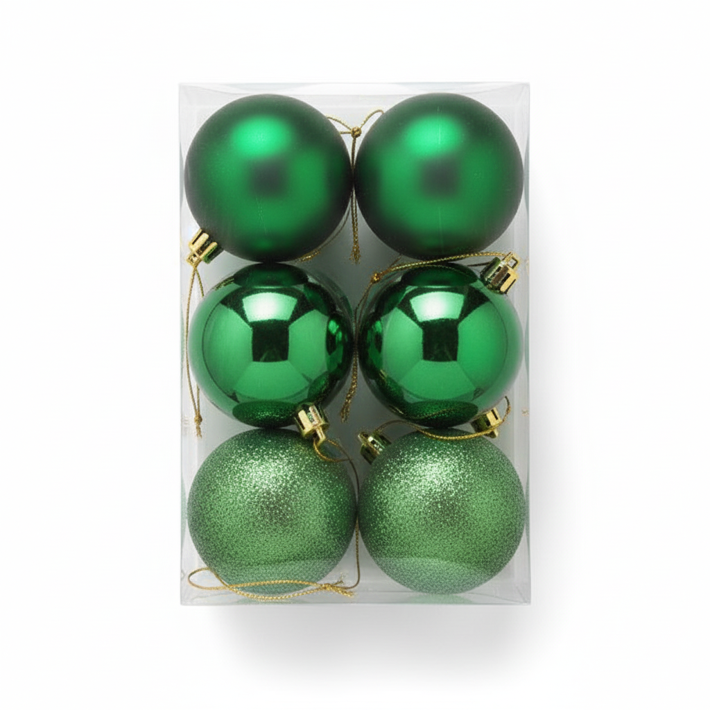 Com 6 cm de diâmetro, estas bolas são as companheiras perfeitas para bolas maiores (10cm ou 15cm), equilibrando o peso visual da árvore. São fabricadas em material durável e resistente (plástico ou resina) e vêm equipadas com um gancho seguro, garantindo que a beleza do seu Natal seja resistente a impactos e dure muitas temporadas.