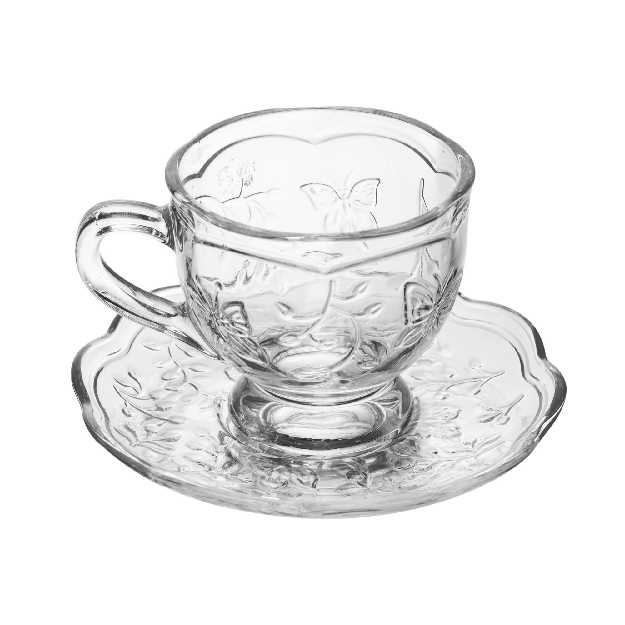 As xícaras são feitas em vidro resistente, em tom incolor, com detalhes decorativos em formato de borboletas que trazem charme e delicadeza. Para conservar, recomenda-se lavar com detergente neutro, usar esponja macia e secar imediatamente para evitar manchas. O conjunto é ideal para quem busca um item funcional e decorativo para o chá no dia a dia ou ocasiões especiais.