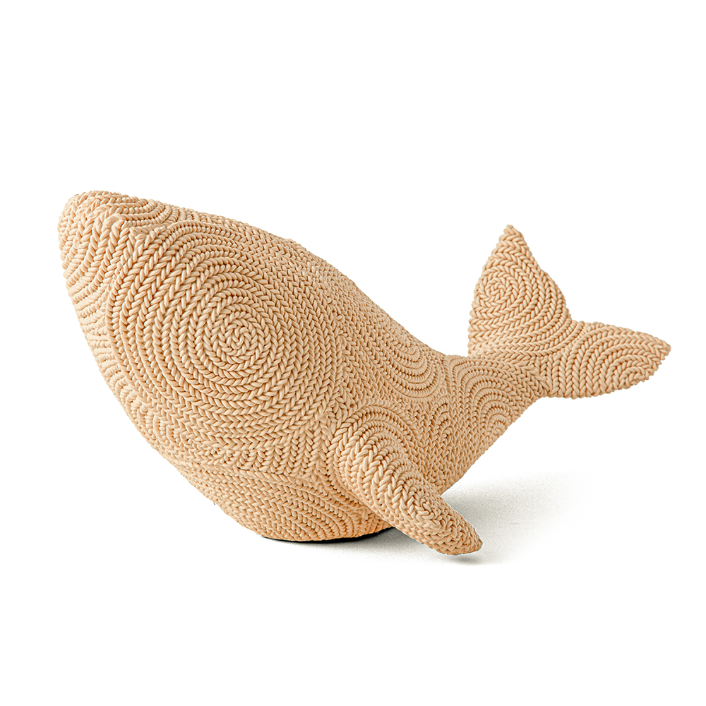 Inclui a escultura de baleia em poliresina no acabamento bege, pronta para uso.