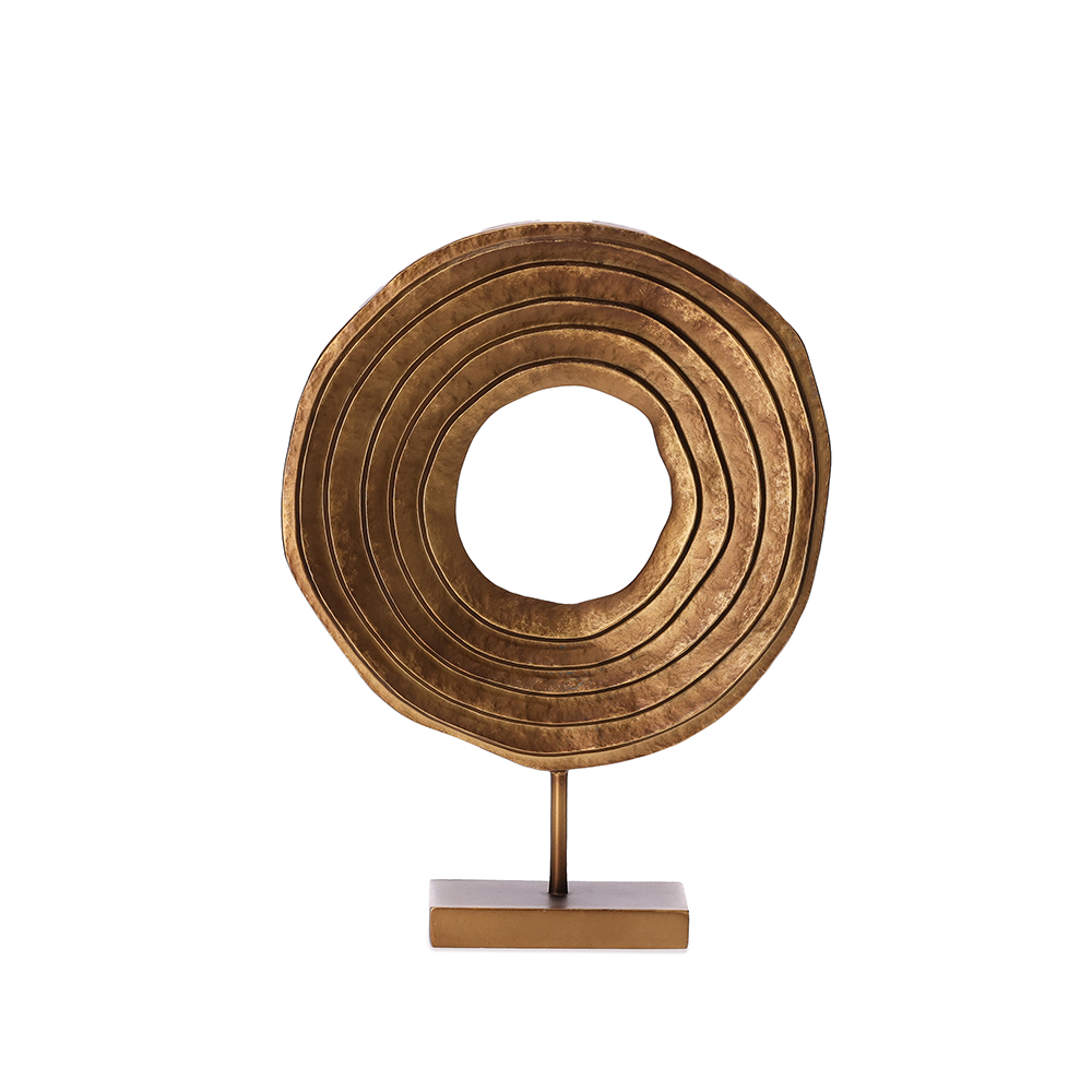 Escultura Mart feita em poliresina, ideal para dar um toque moderno e elegante na decoração da sua casa. Com formato circular e acabamento dourado, é um objeto que destaca qualquer ambiente com estilo e sofisticação.