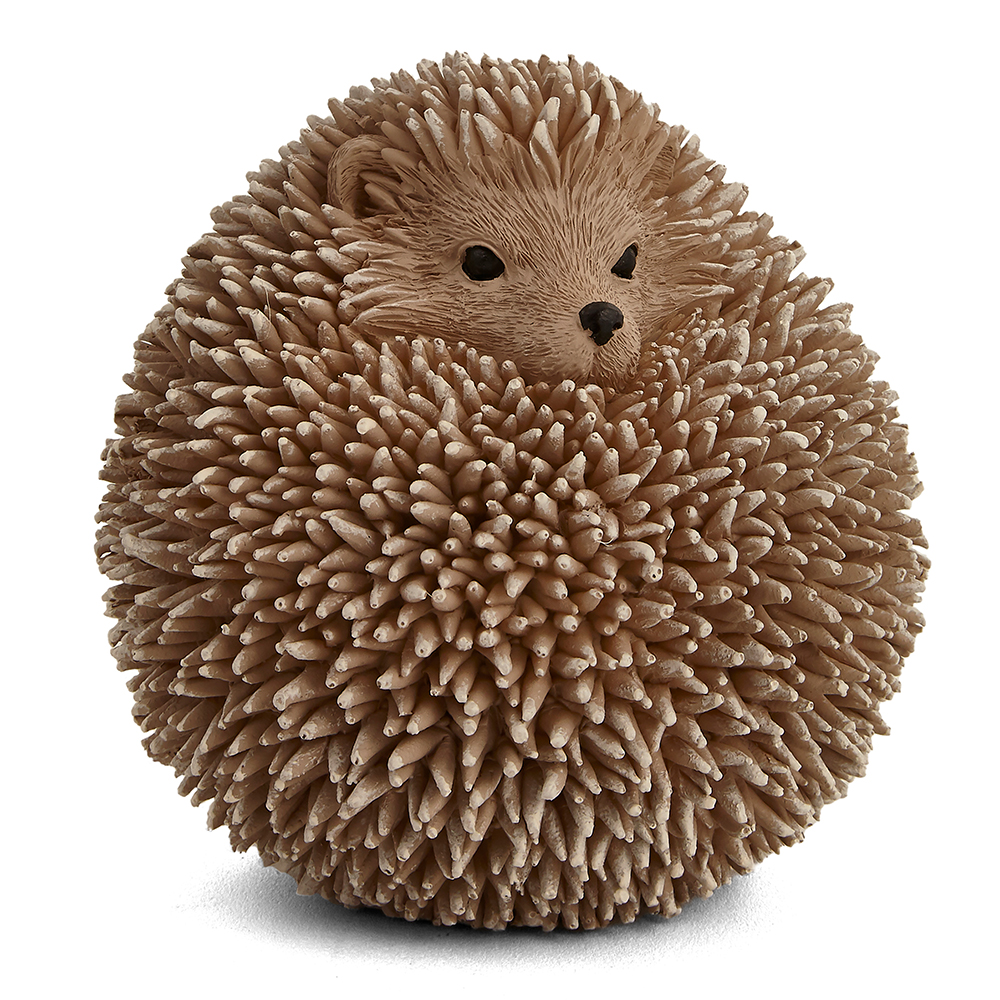 Escultura detalhada em poliresina que traz a imagem de um ouriço com acabamento em tons marrons, ideal para decorar sua casa com charme e delicadeza.