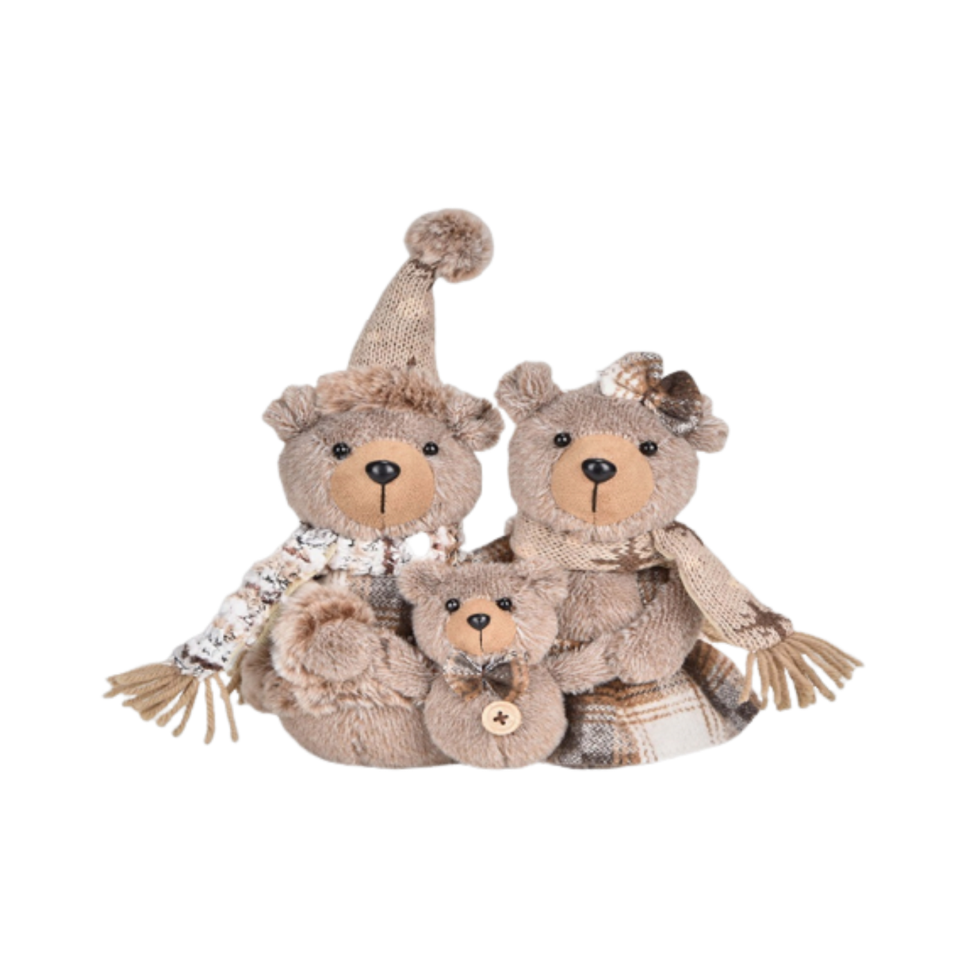 Este encantador trio (tipicamente Urso, Ursa e Filhote) é meticulosamente trabalhado para transmitir calor e doçura. A postura sentada e a proximidade entre os membros da família criam uma cena acolhedora, destacando a ternura do convívio.