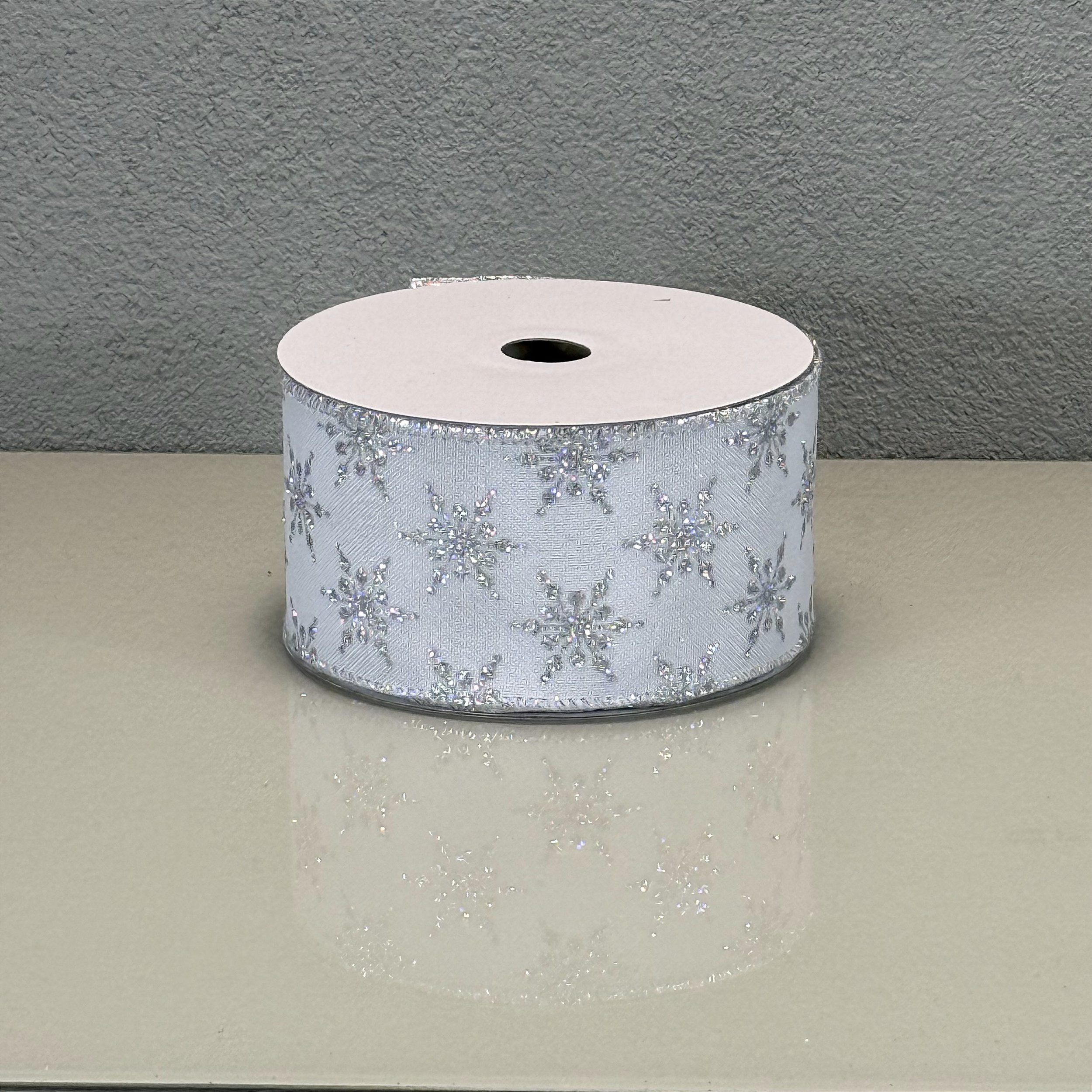 Entre no clima mágico do inverno e do Natal com a Fita Decorativa Aramada Estampa Floco de Neve. Com 6.3cm de largura e um rolo de 9.14 metros. esta fita é a escolha perfeita para criar decorações deslumbrantes. A delicada estampa de flocos de neve evoca a beleza de uma paisagem de inverno. tornando-a ideal para a temporada de festas.