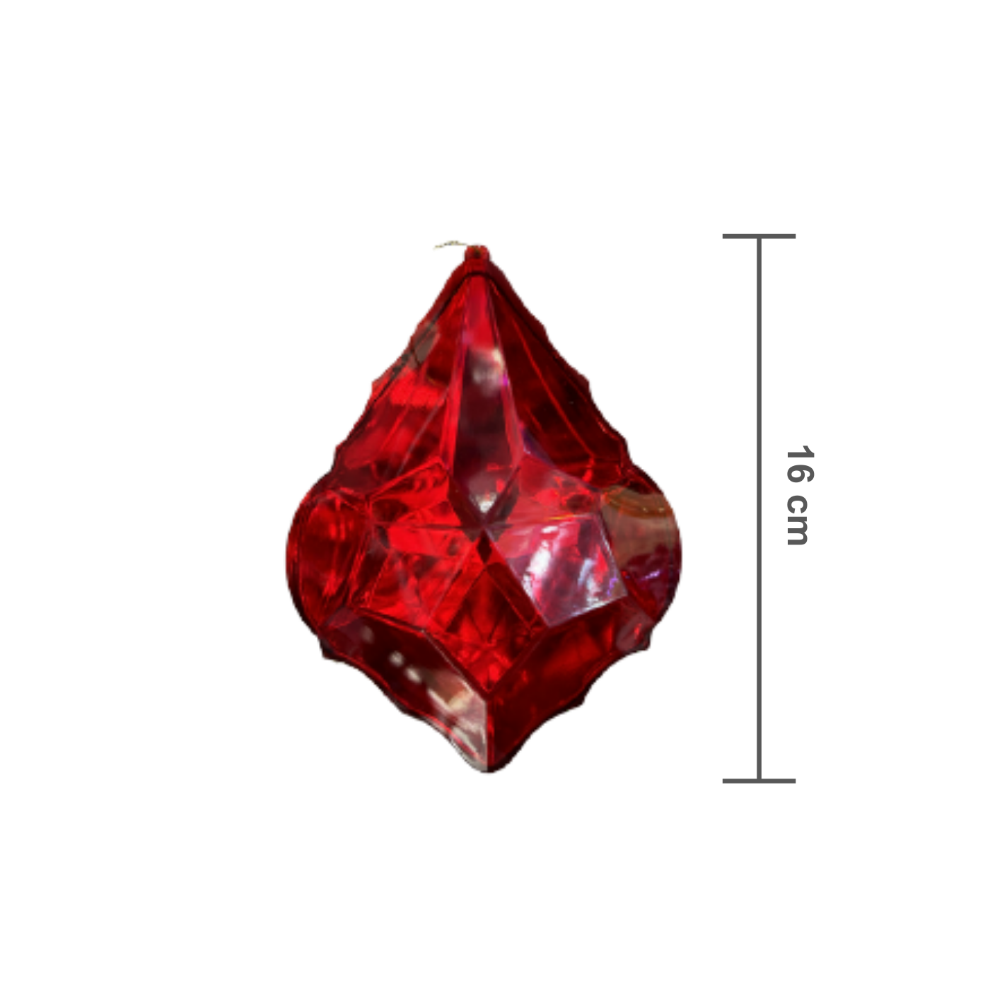 Graças às suas dimensões imponentes de 11 cm de largura por 16 cm de altura, esta joia em Acrílico destaca-se com grande presença e volume. O material Acrílico premium oferece a beleza e a profundidade de cor de um cristal lapidado, mas é totalmente inquebrável e extremamente leve, facilitando a suspensão mesmo em galhos mais delicados. Escolha esta peça para adicionar impacto vertical e a intensidade da cor Vermelha à sua composição natalina.