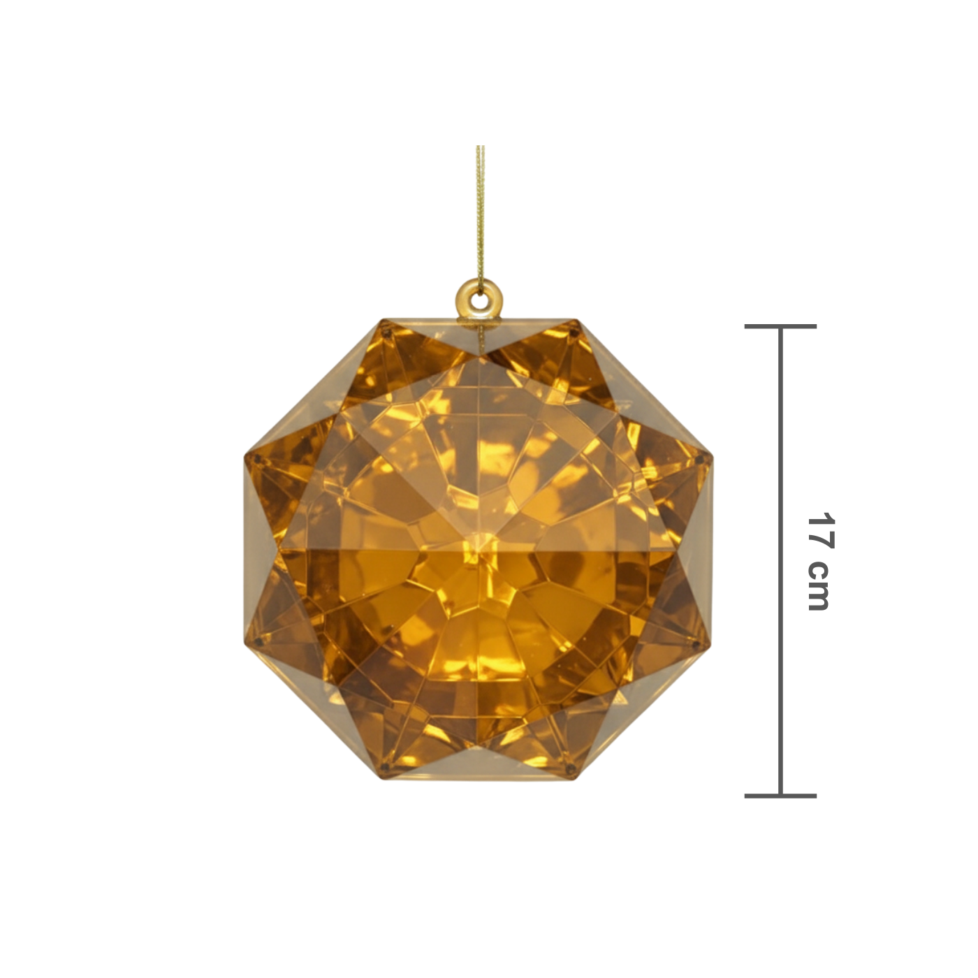 Com dimensões generosas de 16 cm de largura por 17 cm de altura, este enfeite tem um impacto visual poderoso e é ideal para árvores de grande porte ou para ser o destaque principal em guirlandas e arranjos. Fabricada em Acrílico premium de alta resistência, a joia Dourada possui o esplendor do metal, mas com a grande vantagem de ser totalmente inquebrável, ultraleve e segura. Isso garante uma instalação fácil e uma durabilidade que fará desta peça um item valorizado por muitas e muitas festas de fim de ano.