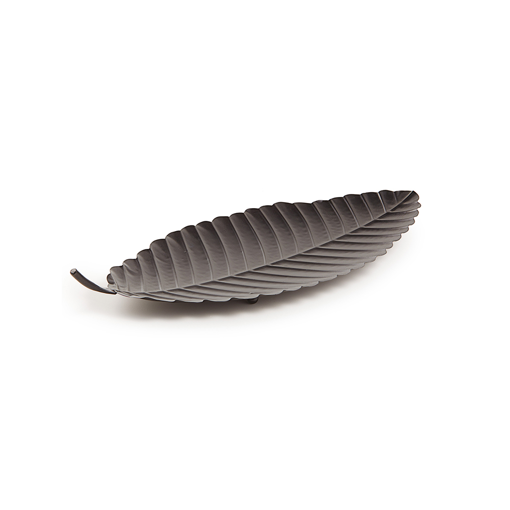 Decore sua festa ou ambiente com elegância usando este centro de mesa em formato de folha preta, feito em metal resistente.