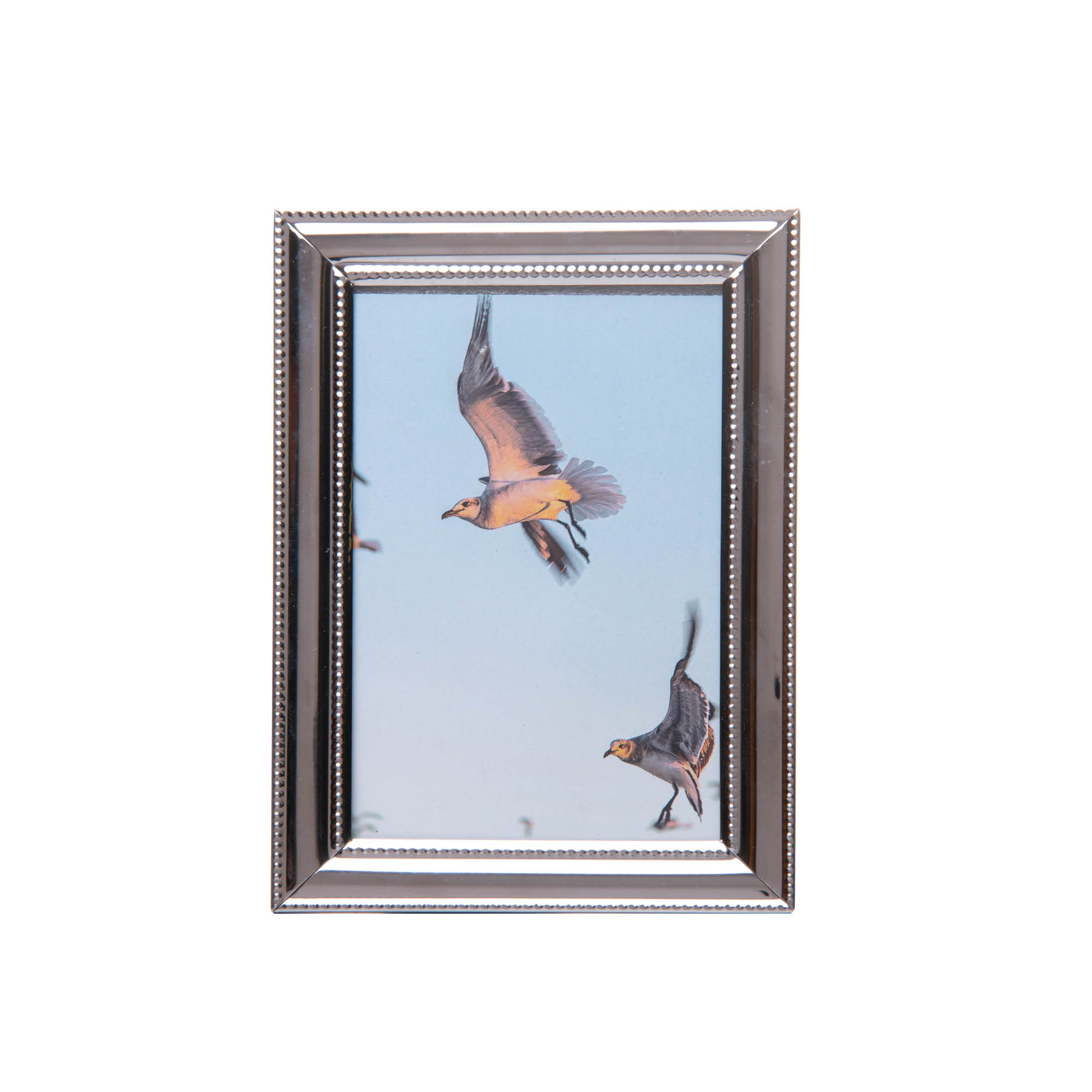 Contém 1 porta-retrato em aço inox com suporte para foto tamanho 10x15 cm.