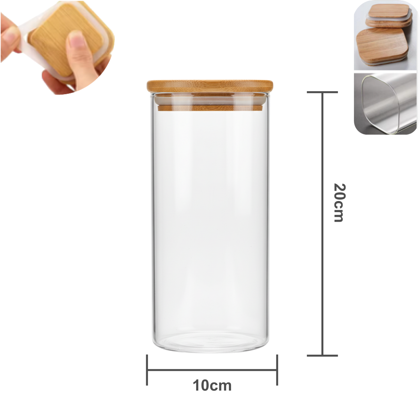 Pote de Vidro Boro Quadrado com Tampa de Bambu 11x20cm