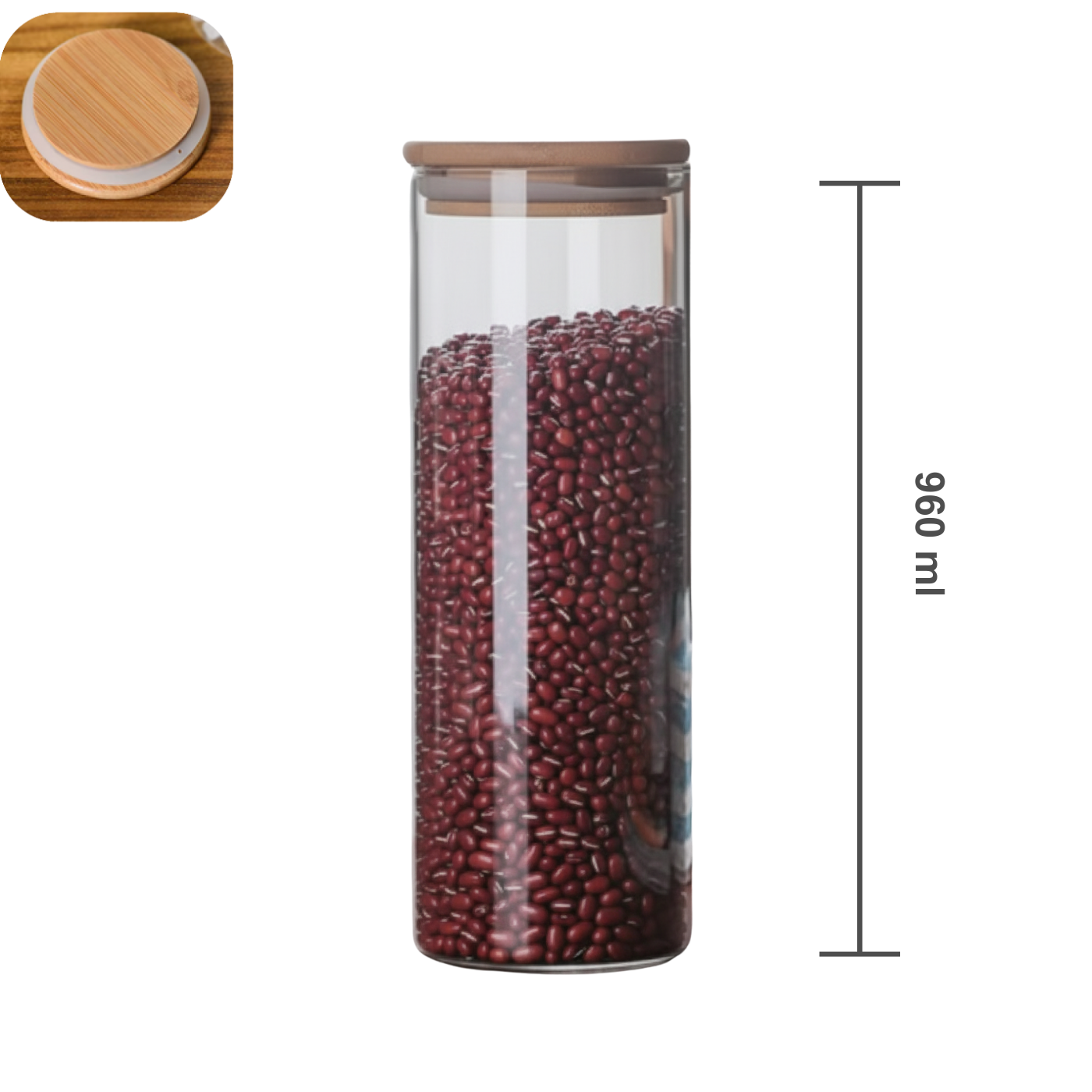 Pote de Vidro Boro Redondo com Tampa de Bambu 9,5x20cm