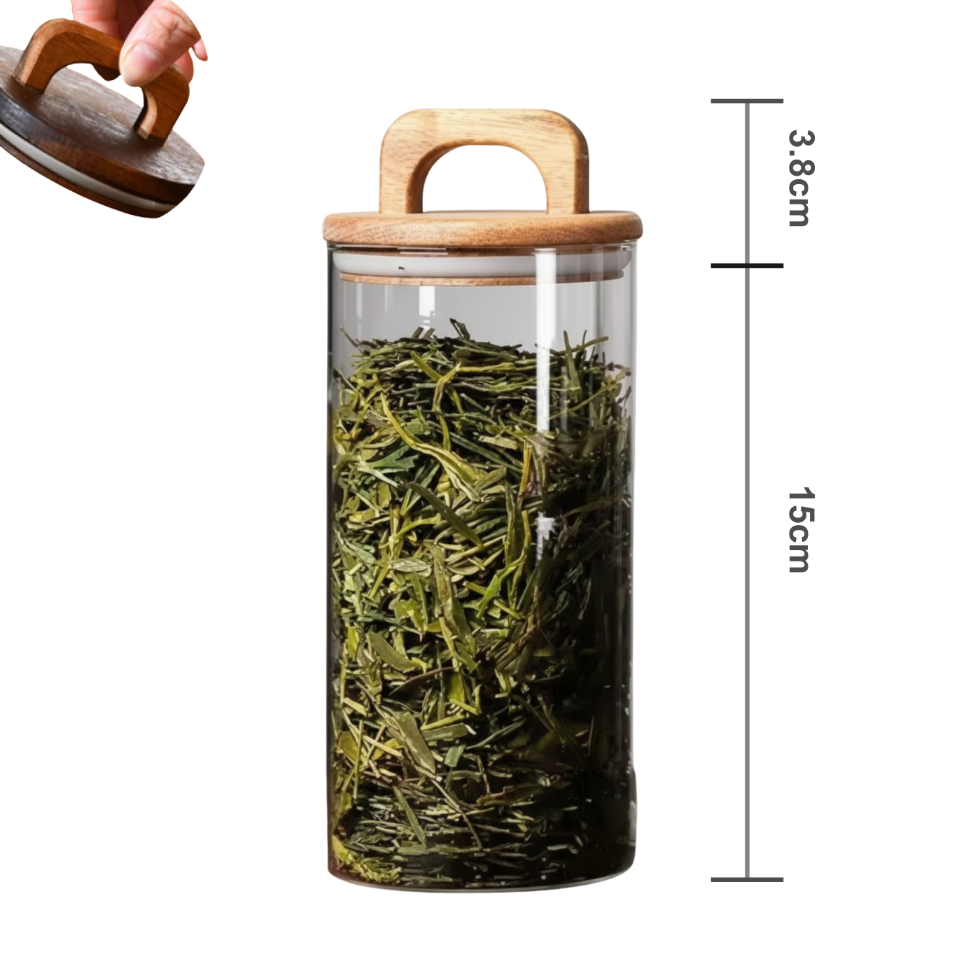 Pote de Vidro Boro Teca Redondo com Tampa com Alça 10x15cm
