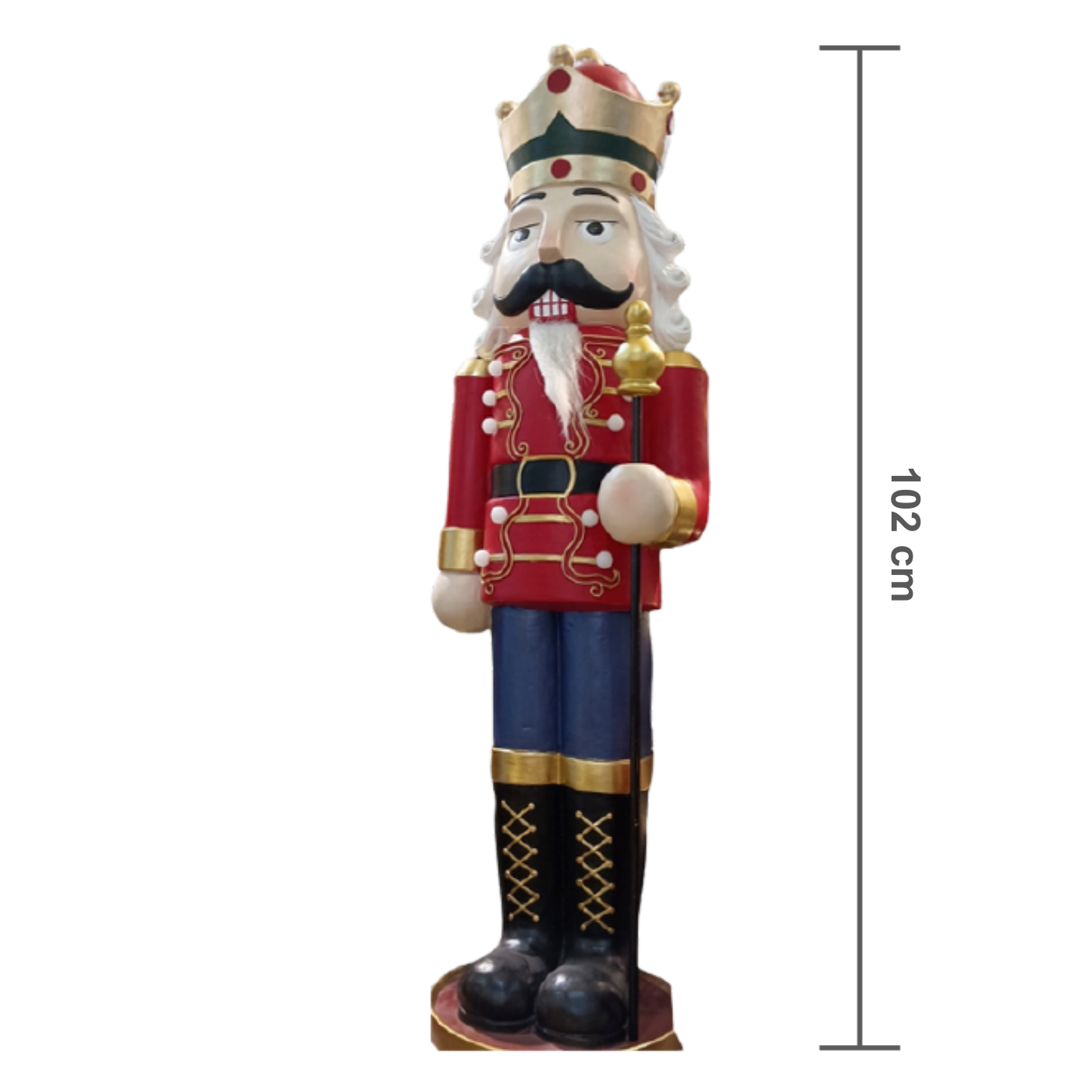Apresentamos o Soldadinho Rei de Natal, uma peça de decoração com dimensões impressionantes: 102 cm de altura. Com sua postura régia e uniforme ricamente detalhado, ele evoca a magia clássica do conto de fadas O Quebra-Nozes, adicionando uma aura de tradição e nobreza à sua celebração. Este não é apenas um adorno; é um guardião majestoso que saúda seus convidados e define o tom da sua decoração natalina com grande impacto visual.