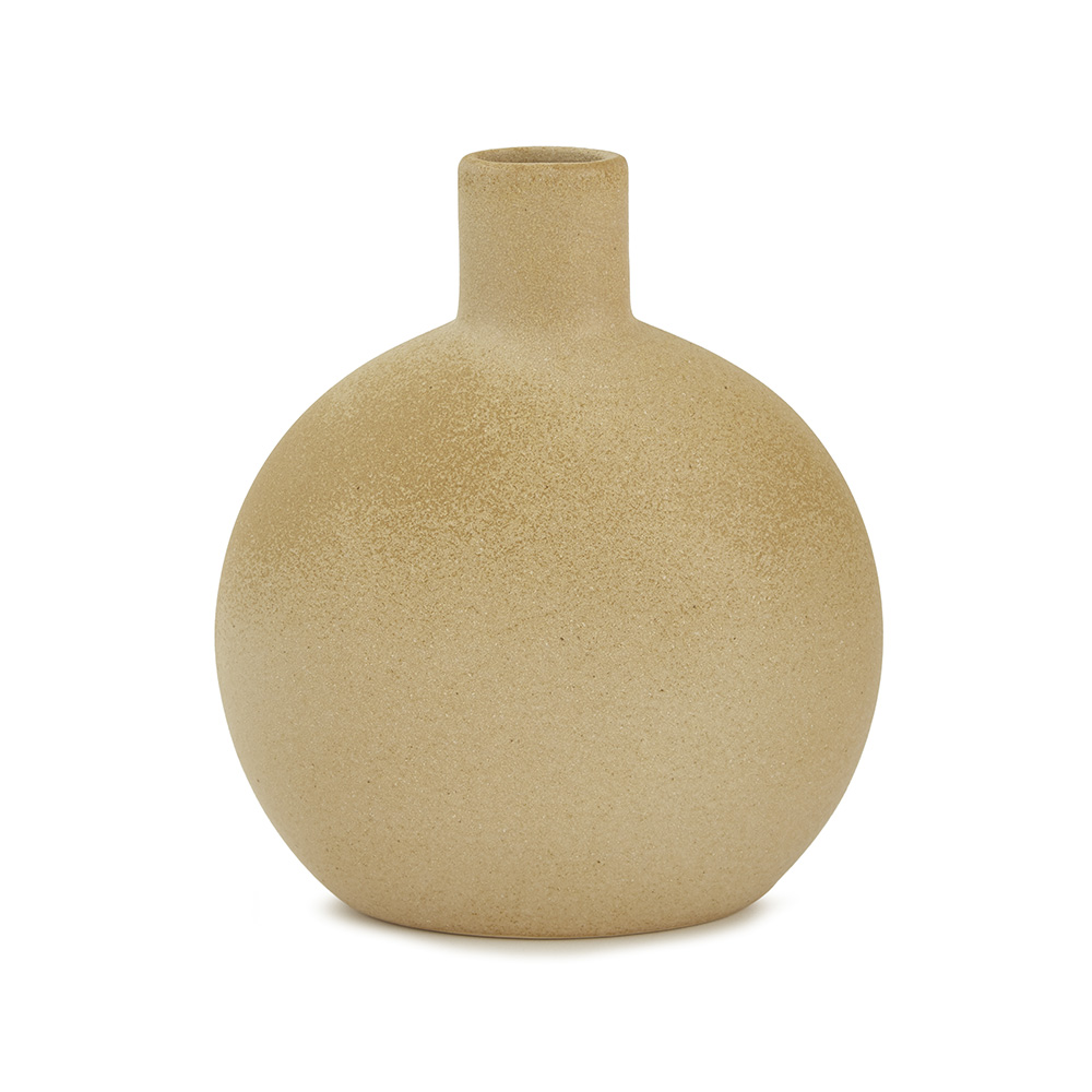 Vaso feito em cerâmica com acabamento na cor bege, ideal para valorizar qualquer ambiente com elegância e simplicidade.