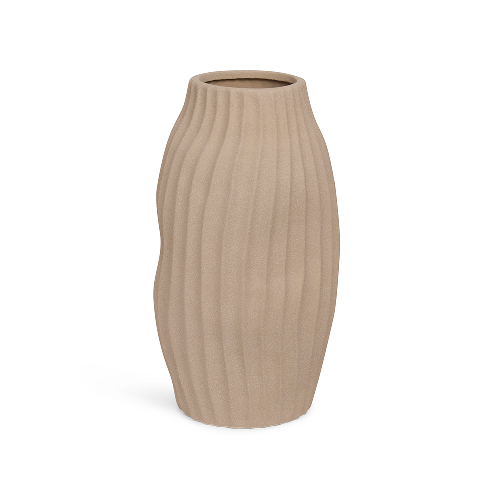 Vaso decorativo em cerâmica bege com textura ondulada que realça a decoração com estilo e naturalidade, ideal para ambientes internos.