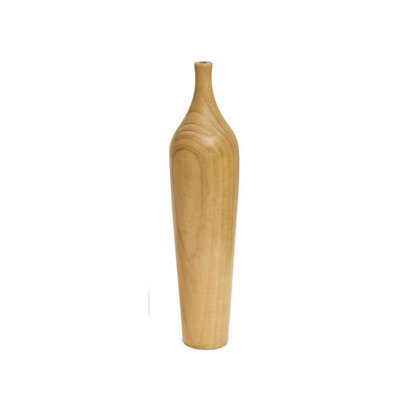 O vaso é feito em madeira sólida, proporcionando durabilidade e toque artesanal. Sua altura de 45 cm e largura de 10,5 cm facilitam a colocação em estantes, mesas laterais ou aparadores, dando destaque à decoração sem sobrecarregar o espaço.
